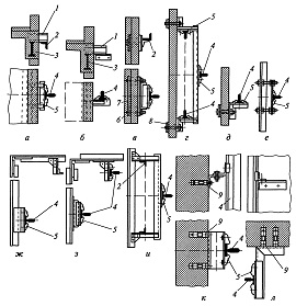 На рис. 2.88, в—д показано крепление направляющих к стенам шахты,