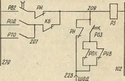 Реле замедления (рис. 5.14) РЗ может получать напряжение от шинки 279